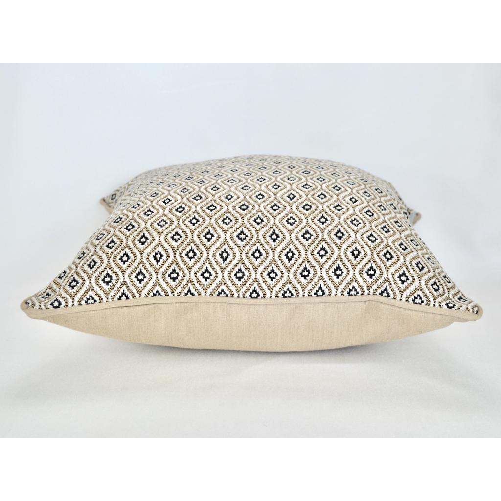 Bohemien Style Kissen für den Außen- und Innenbereich in der natürlichen Farbkombination Beige, Taupe, Weiß und Schwarz.