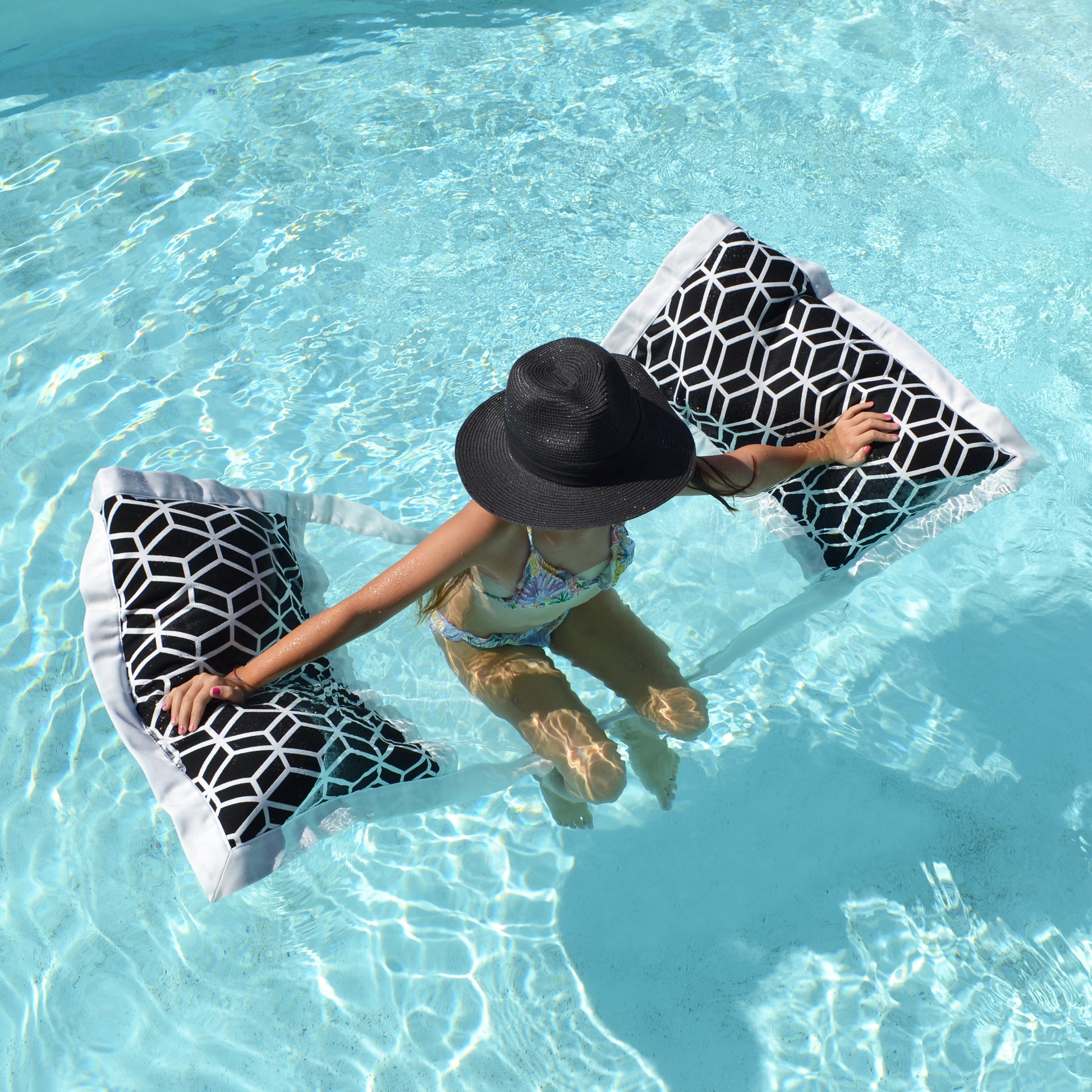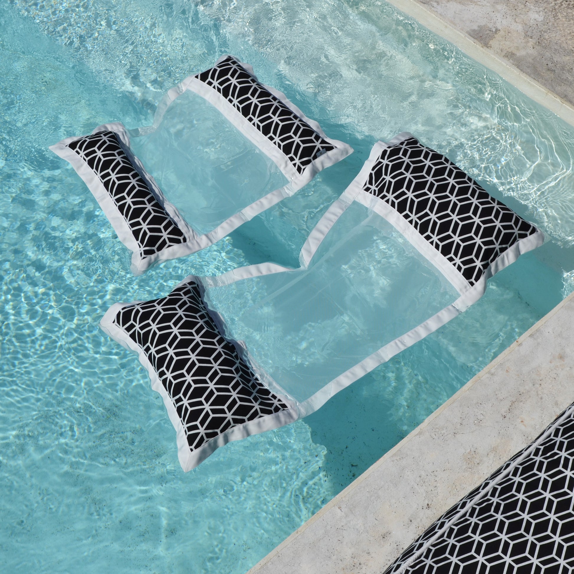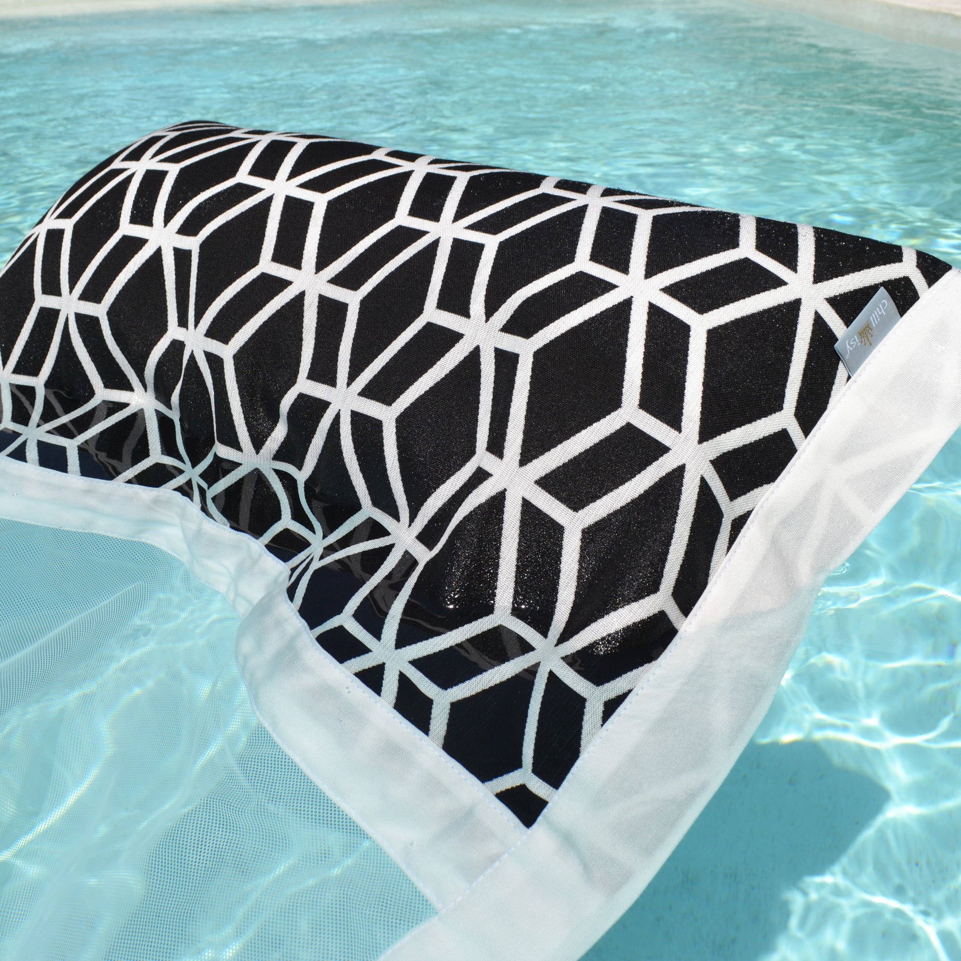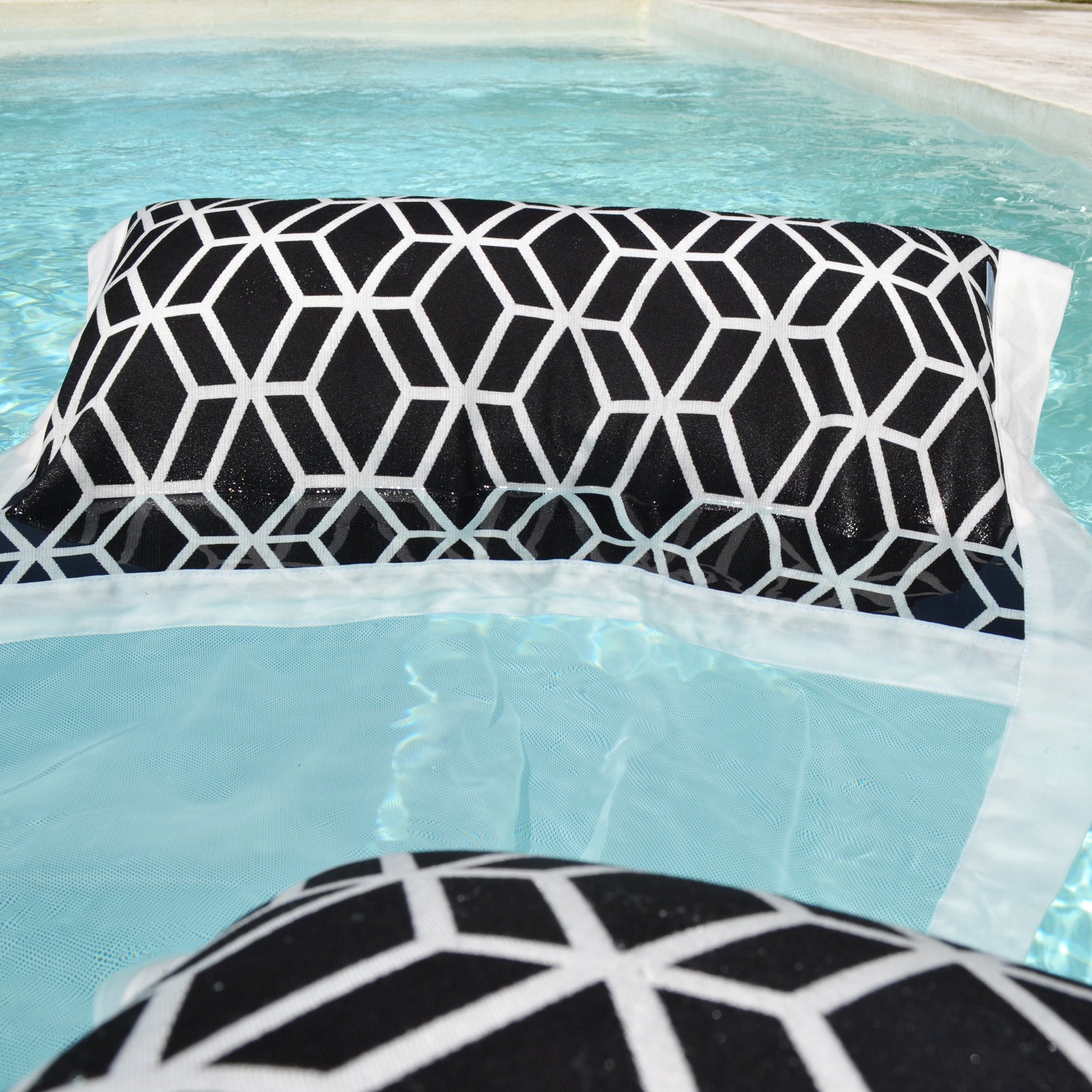 Mit der Wasserhängematte Crystal im schwarzen Design, können Sie sich besonders gut im Wasser entspannen. Mit dieser textilen Schwimmliege liegen, durch die beiden eingenähten Kissen, Kopf und Beine mega bequem auf dem Wasser, während das Mittelteil den Körper im Wasser schweben lässt. Diese im Wasser selbstschwebende Schwimmliege ist in verschiedenen Farben erhältlich.