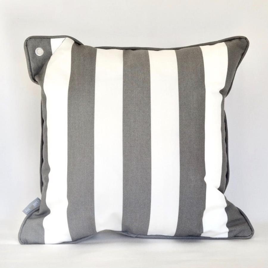 Yachtkissen Grau Weiß gestreift Sunbrella mit Öse & Keder