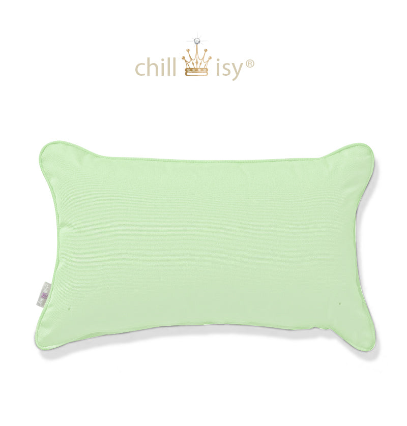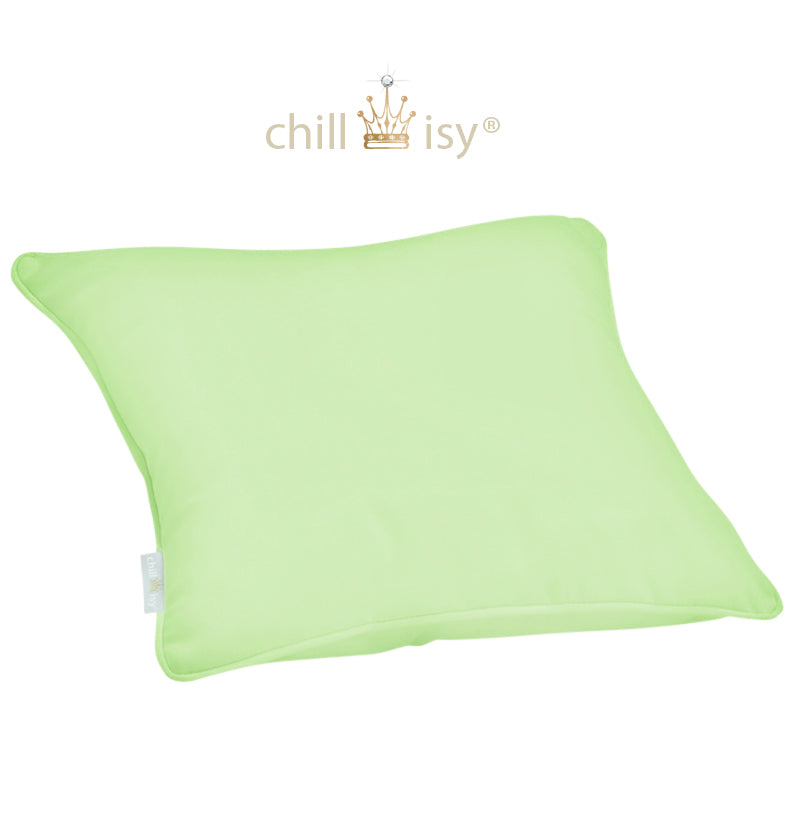 Beautiful cushion in light green, suitable for indoor and outdoor use - on land and at sea. The cushion cover has a zipper and high-quality piping on all four sides made from the same fabric. Made in Germany.