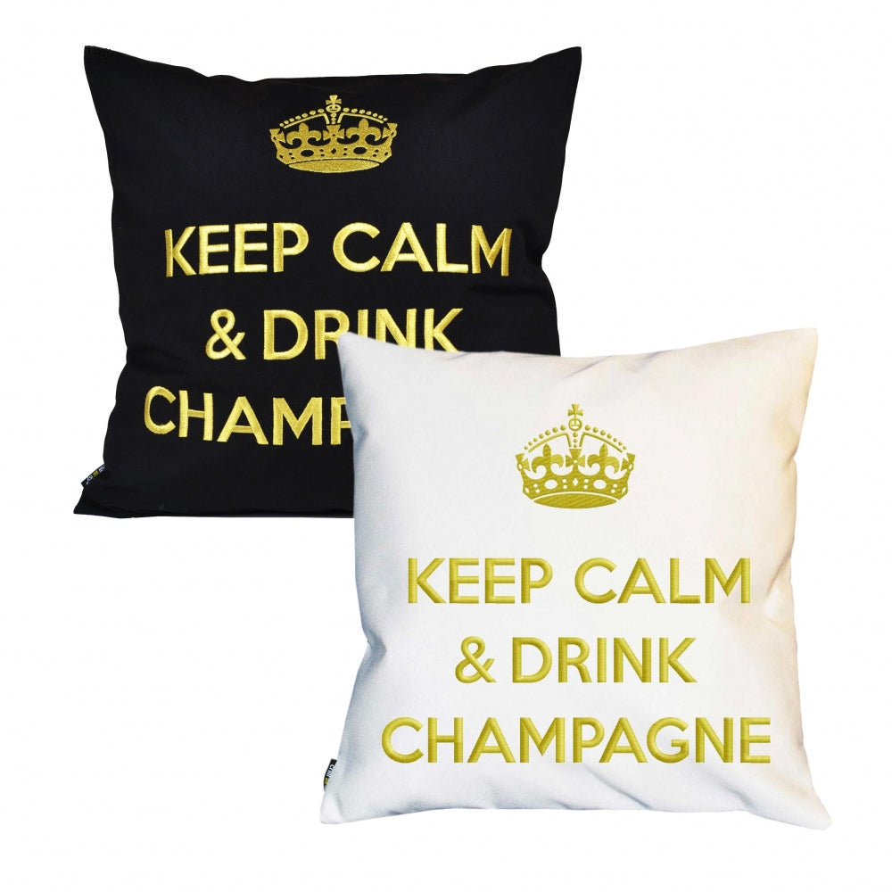 Kissen Keep Calm & Drink Champagne, Weiß Gold