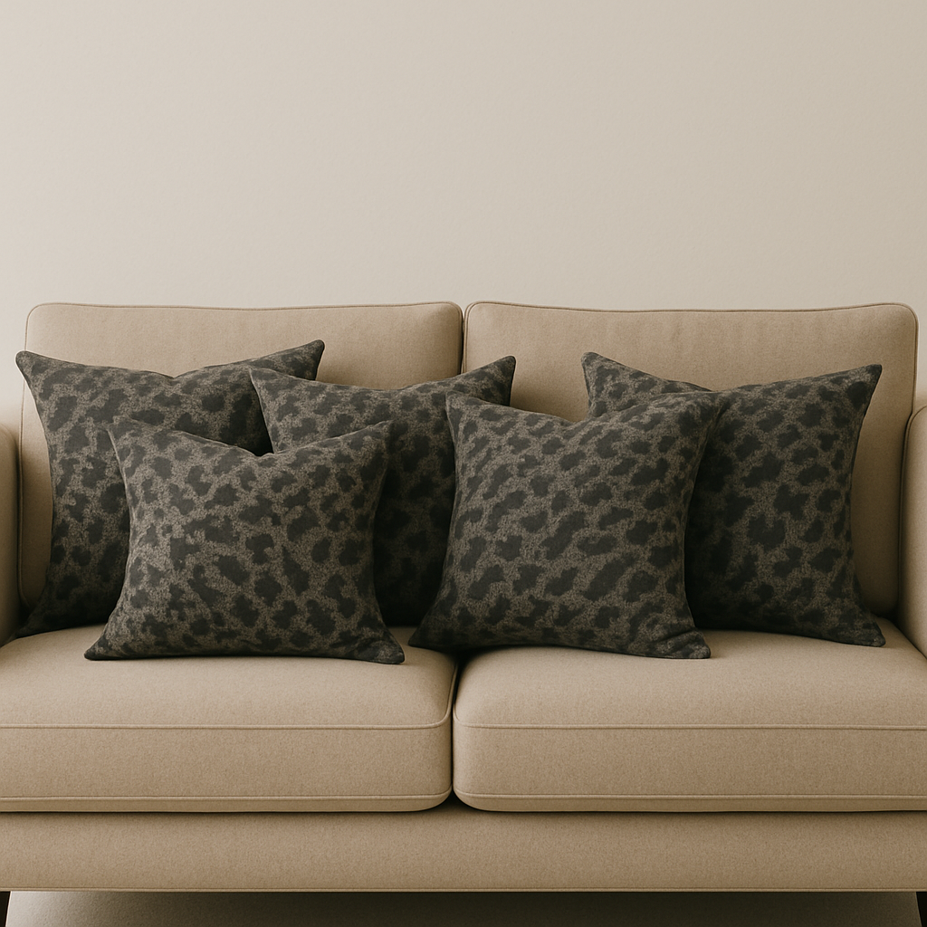 Ein sehr schönes schwarz taupes Dekokissen im Leo Design, aus Jacquardgewebe.
