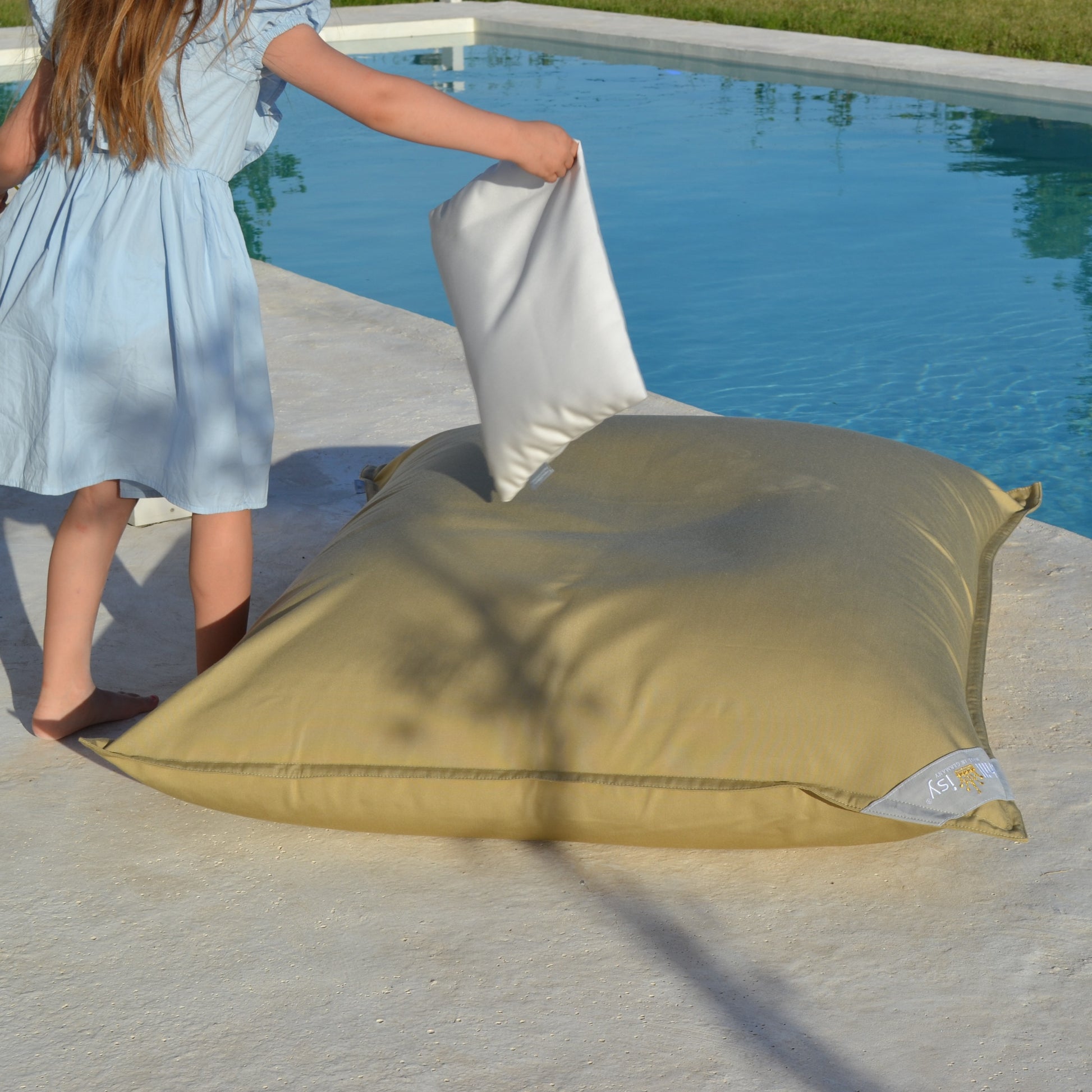 Es besteht aus einem separaten Innenkissen, das mit Styroporperlen gefüllt ist, wodurch das Tragen des Körpers im Wasser ermöglicht wird. Das Kissen kann im Wasser während dem Rücken- oder Brustschwimmen unterstützend verwendet werden, unter die Arme oder zwischen die Beine geklemmt bewegen Sie sich stabiler fort. Am Strand verwenden Sie es als Kopfkissen, und in der Strandbar verwenden Sie es als Sitzpolster, um nicht auf Plastik zu sitzen.